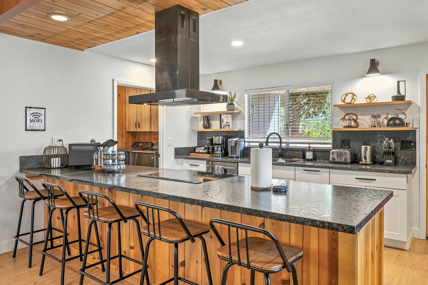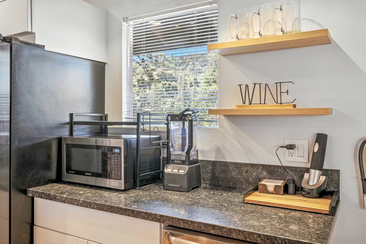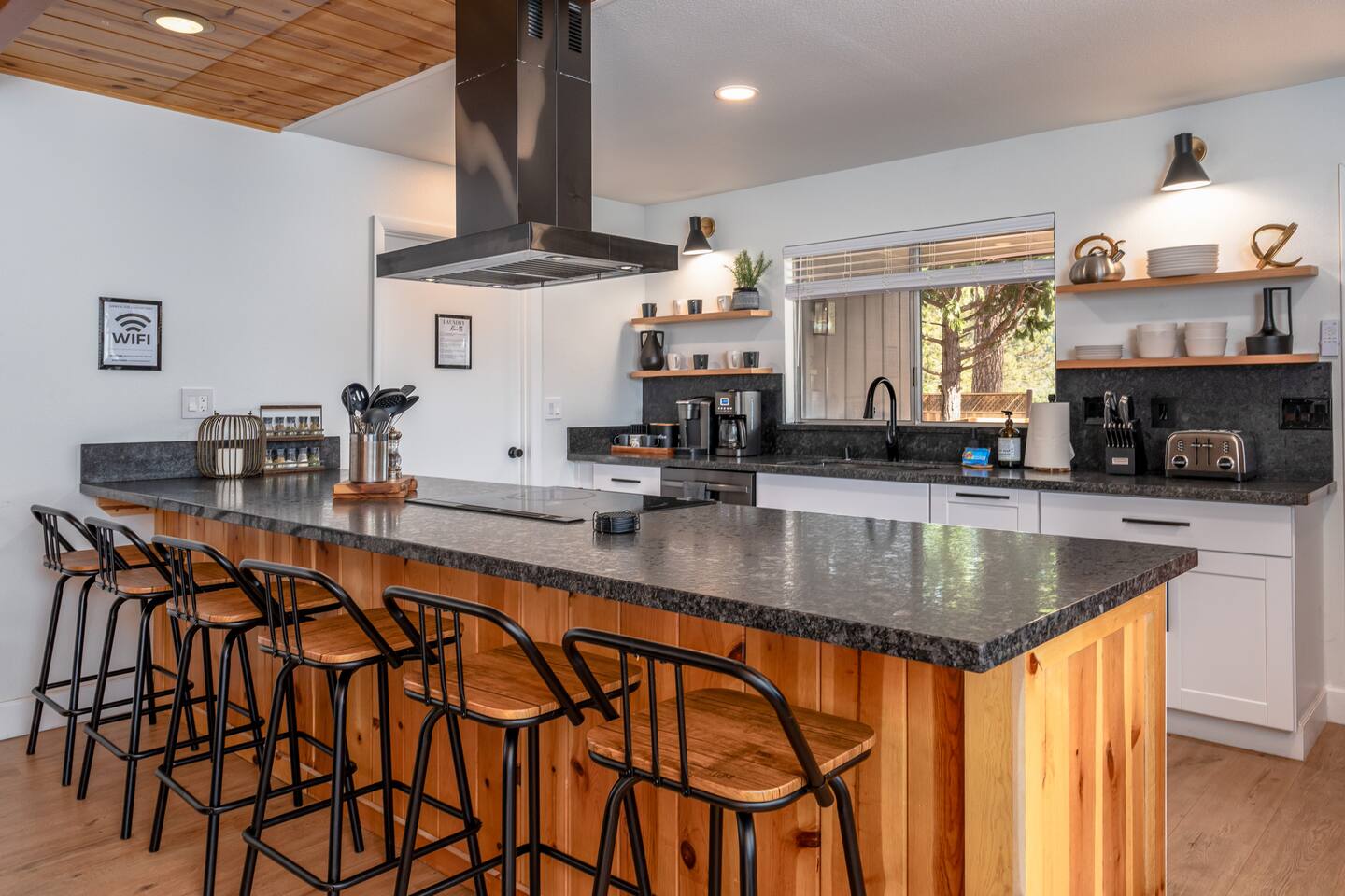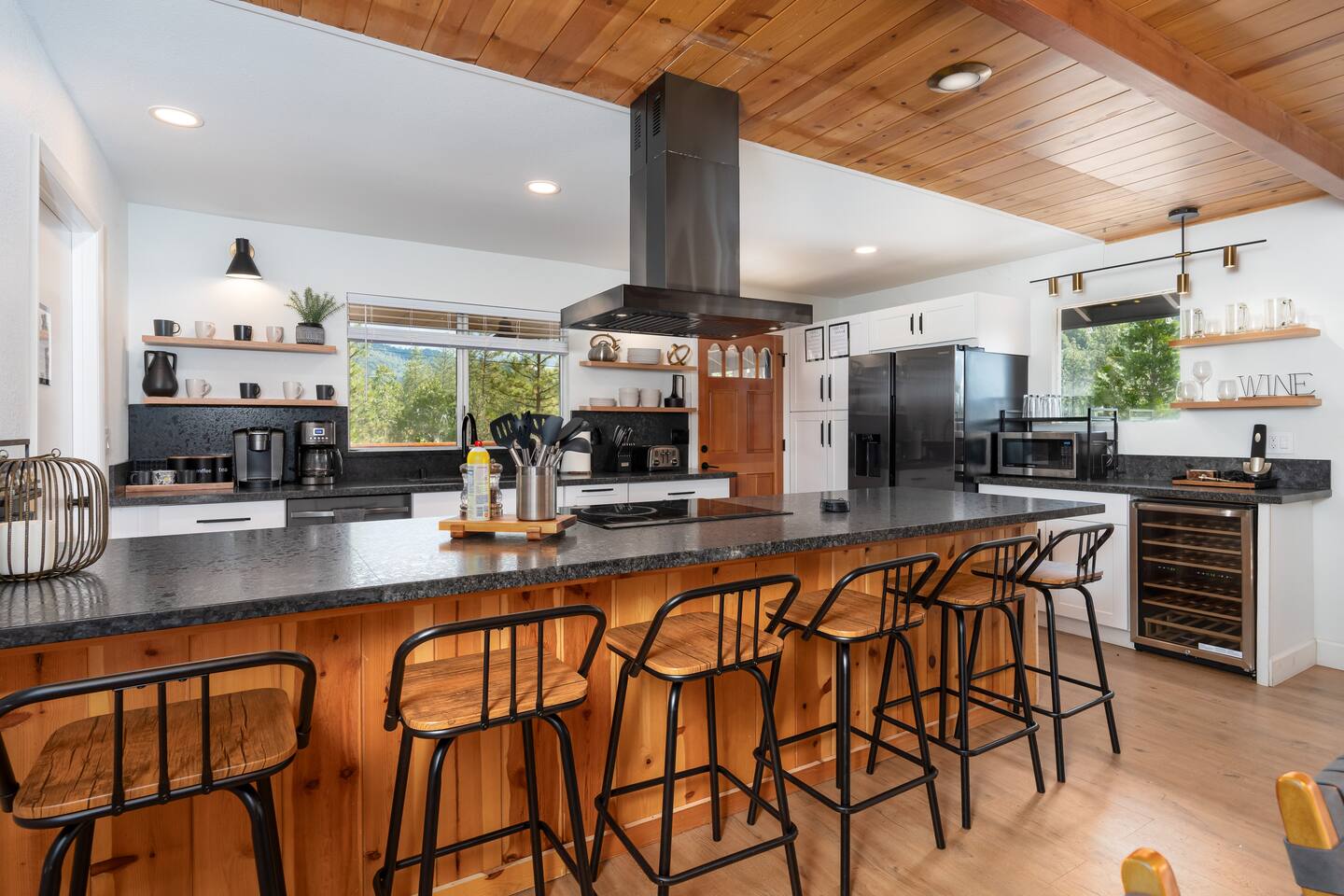 -Fully stocked gourmet kitchen and coffee bar, including Keurig, drip-coffee machine and wine fridge