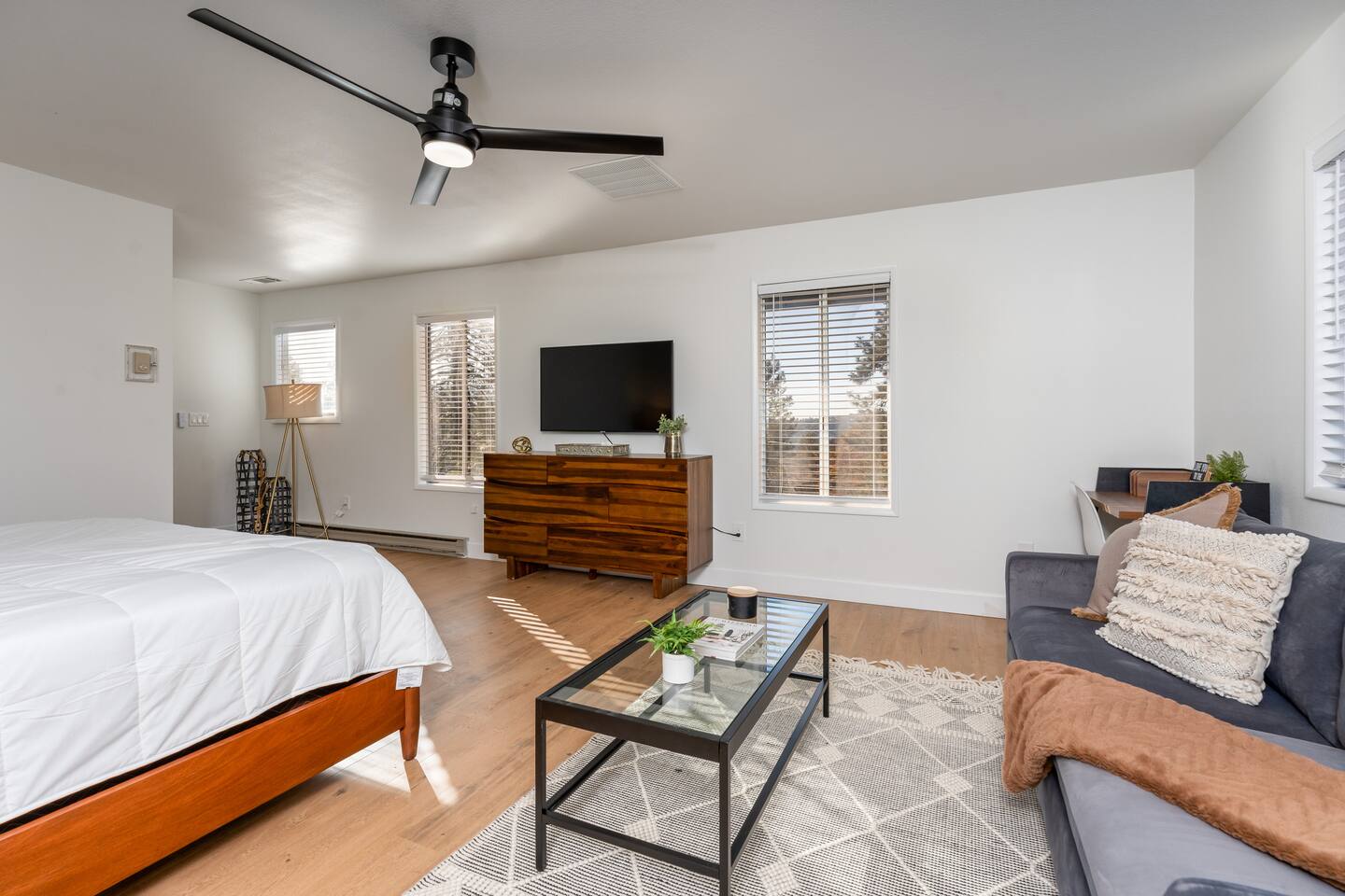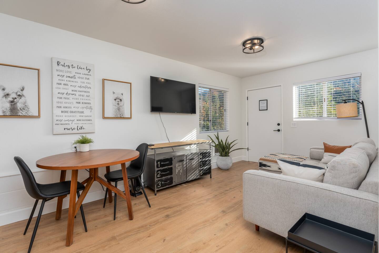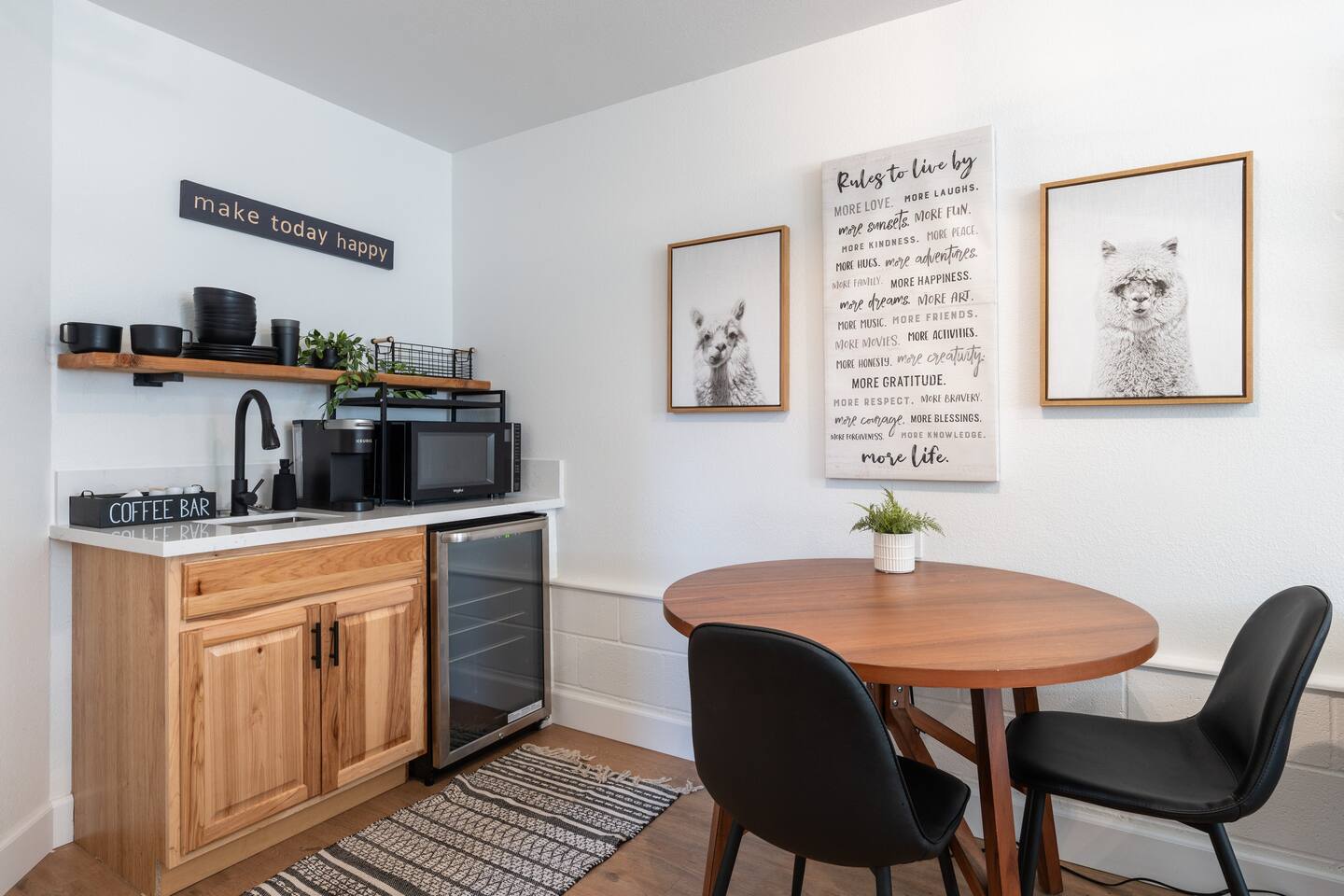 -Kitchenette with seating area, couch, Smart TV, mini-fridge and Keurig