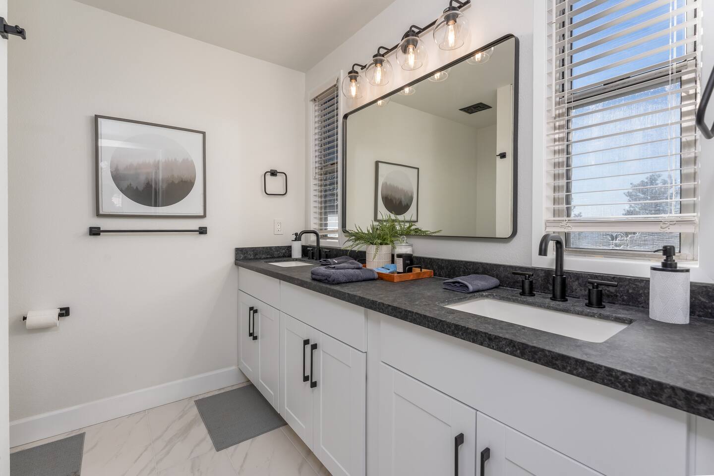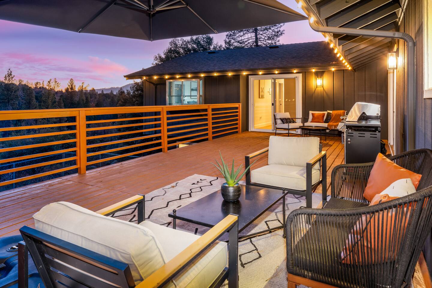 Momo's Yosemite Retreat is located in the desirable Yosemite Forks neighborhood and features gorgeous views of the Sierra Nevada Mountains. Relax with your friends and family in the over 3,800 sq. ft. of living space that features three common areas, game room, three outdoor seating areas, a fully-fenced backyard, hot tub, grill and fire pit.